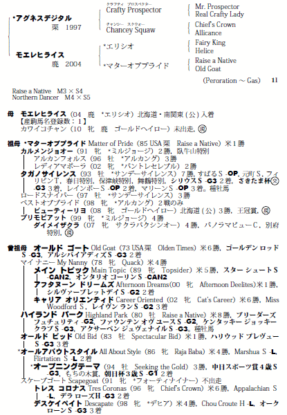 | 父:アグネスデジタル 母:モエレヒライス(母父:エリシオ) |