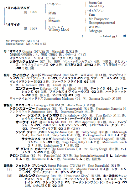 父:ヨハネスブルグ 母:オマイタ(母父:Miswaki)