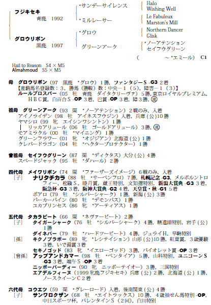父:フジキセキ 母:グロウリボン(母父:グロウ)