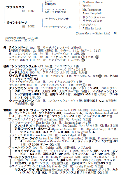 父:ファスリエフ 母:ラインレジーナ(母父:サクラバクシンオー)