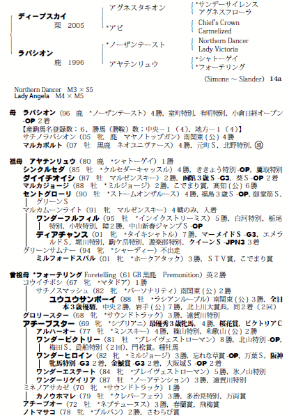 父:ディープスカイ 母:ラパシオン(母父:ノーザンテースト)