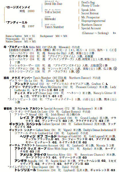 父:ロージズインメイ 母:アルディーミル(母父:Miswaki)