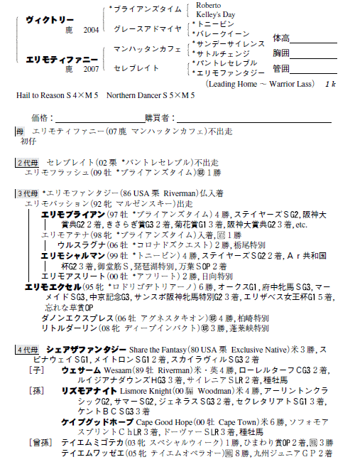 父:ヴィクトリー 母:エリモティファニー(母父:マンハッタンカフェ)