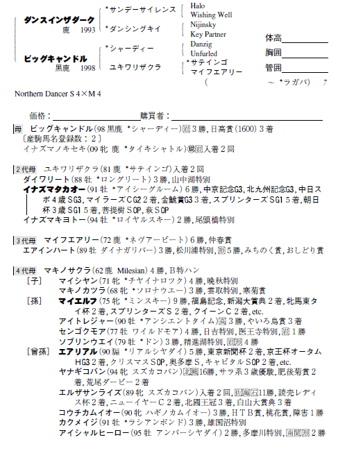 父:ダンスインザダーク 母:ビッグキャンドル(母父:シャーディー)