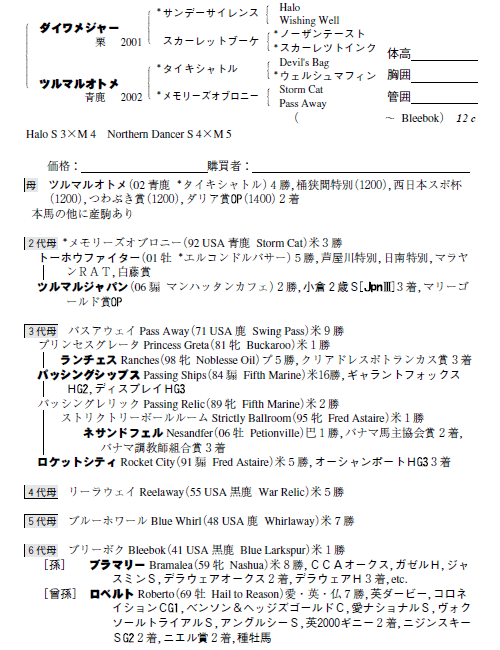 父:ダイワメジャー 母:ツルマルオトメ(母父:タイキシャトル)