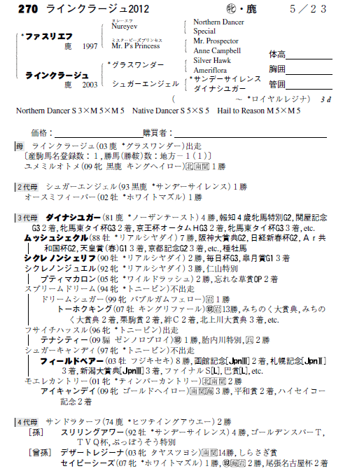 父:ファスリエフ 母:ラインクラージュ(母父:グラスワンダー)