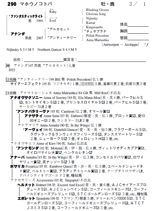父:ファンタスティックライト 母:アナンダ(母父:アルカセット)