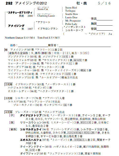 父:スタチューオブリバティ 母:アメイジング(母父:アフリート)