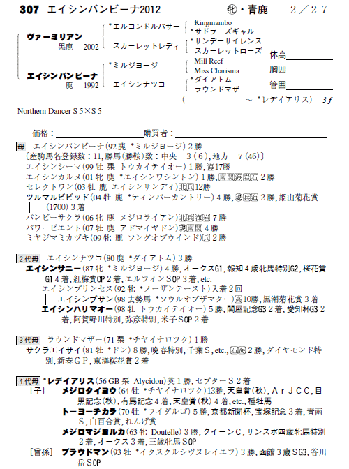 父:ヴァーミリアン 母:エイシンバンビーナ(母父:ミルジヨージ)