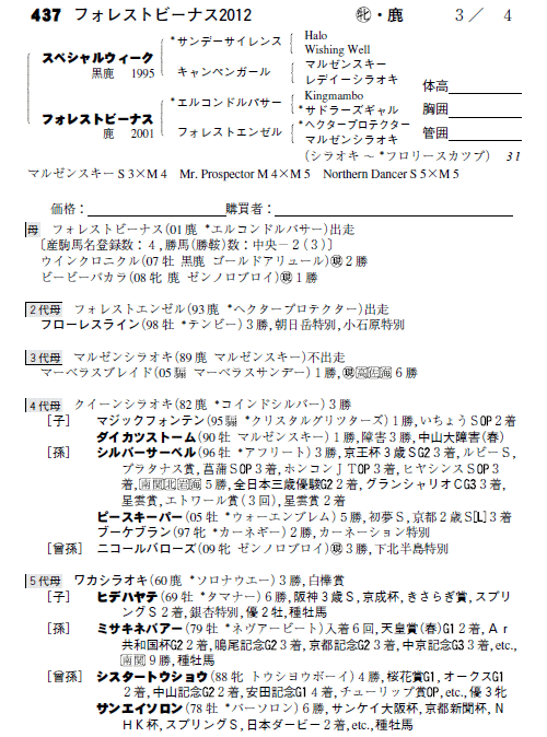父:スペシャルウィーク 母:フォレストビーナス(母父:エルコンドルパサー)