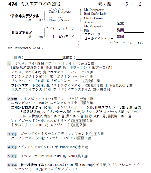 父:アグネスデジタル 母:ミスズアロイ(母父:フォーティナイナー)