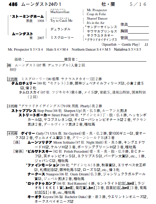 父:ストーミングホーム 母:ムーンダスト(母父:デュランダル)