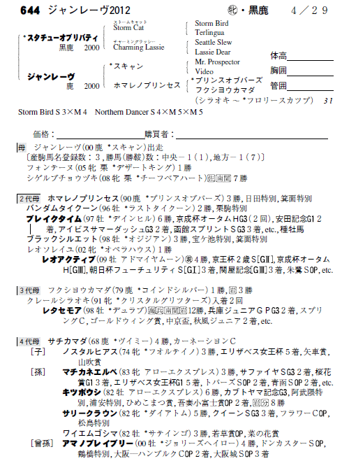 父:スタチューオブリバティ 母:ジャンレーヴ(母父:スキャン)