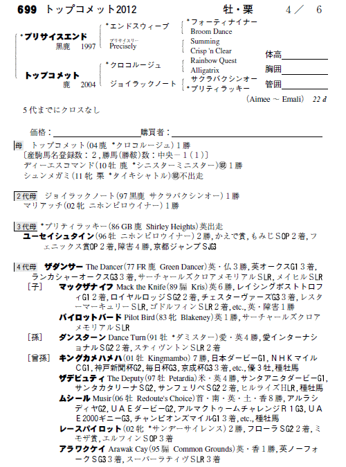 父:プリサイスエンド 母:トップコメット(母父:クロコルージュ)