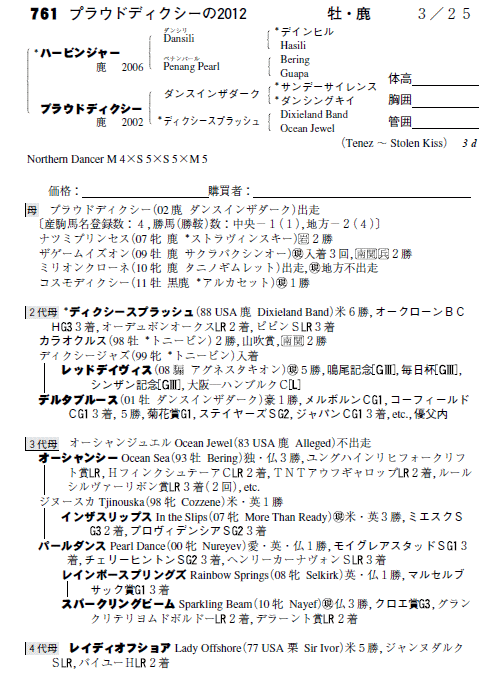 父:ハービンジャー 母:プラウドディクシー(母父:ダンスインザダーク)
