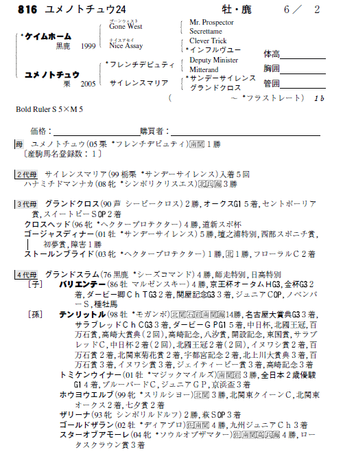 父:ケイムホーム 母:ユメノトチュウ(母父:フレンチデピュティ)