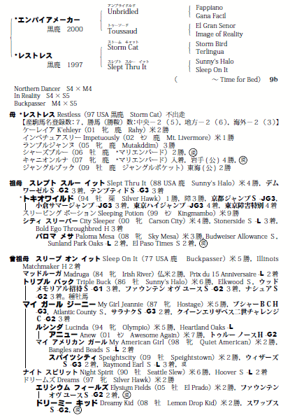 父:エンパイアメーカー 母:レストレス(母父:Storm Cat)