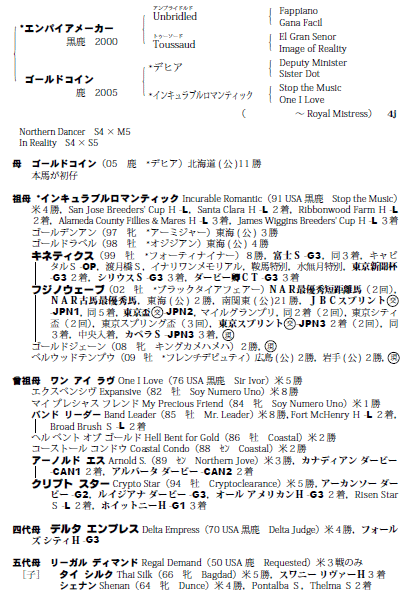 父:エンパイアメーカー 母:ゴールドコイン(母父:デヒア)