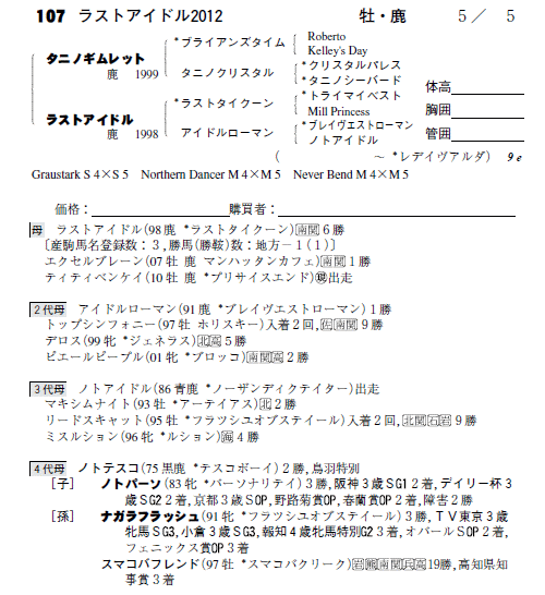 父:タニノギムレット 母:ラストアイドル(母父:ラストタイクーン)