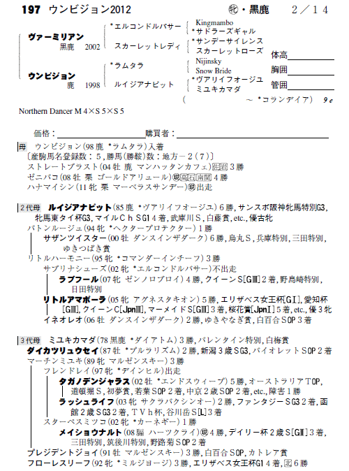 父:ヴァーミリアン 母:ウンビジョン(母父:ラムタラ)