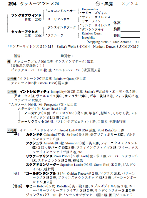 父:ソングオブウインド 母:タッカーアツヒメ(母父:ダンスインザダーク)
