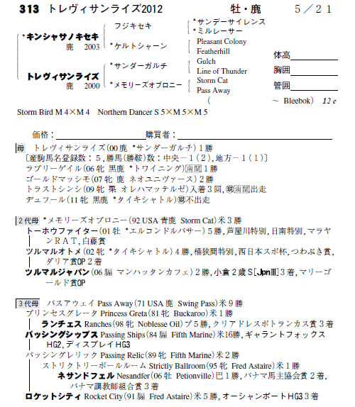 父:キンシャサノキセキ 母:トレヴィサンライズ(母父:サンダーガルチ)