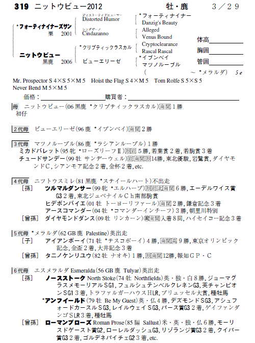 父:フォーティナイナーズサン 母:ニットウビュー(母父:クリプティックラスカル)
