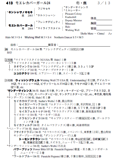 父:キンシャサノキセキ 母:モエレカバーガール(母父:フレンチデピュティ)