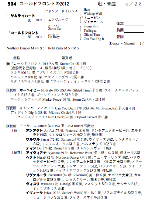 父:サムライハート 母:コールドフロント(母父:Storm Cat)