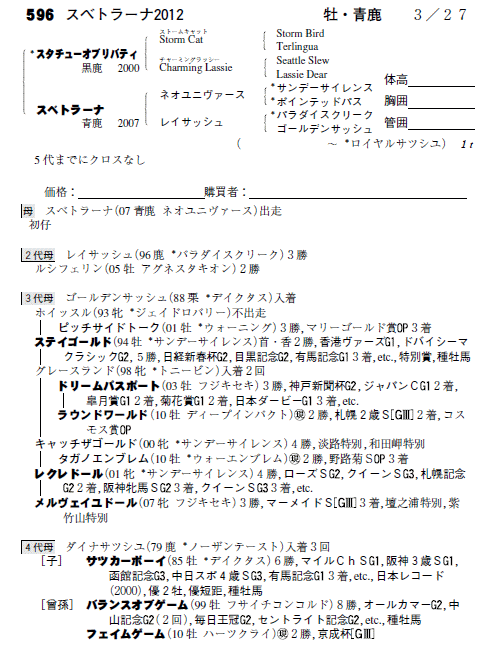 父:スタチューオブリバティ 母:スベトラーナ(母父:ネオユニヴァース)