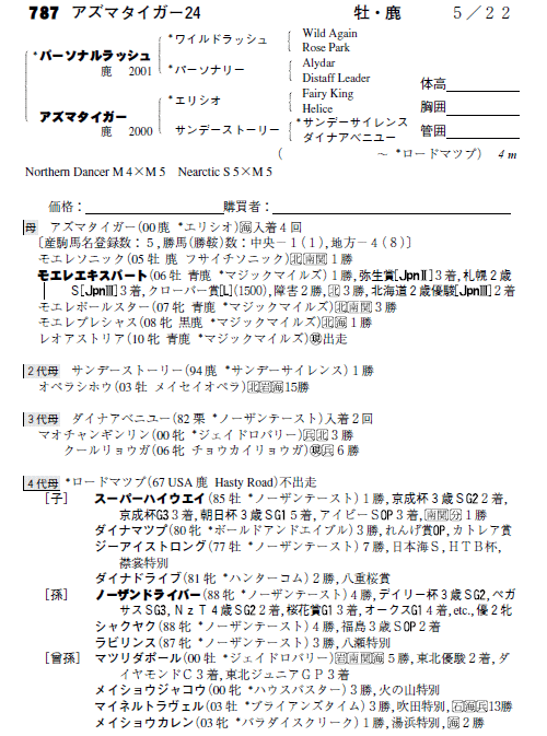 父:パーソナルラッシュ 母:アズマタイガー(母父:エリシオ)