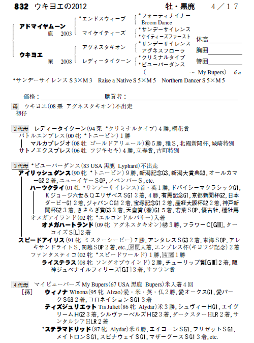 父:アドマイヤムーン 母:ウキヨエ(母父:アグネスタキオン)