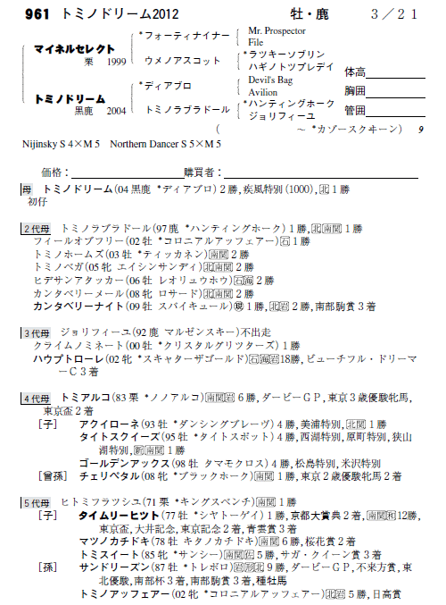 父:マイネルセレクト 母:トミノドリーム(母父:ディアブロ)
