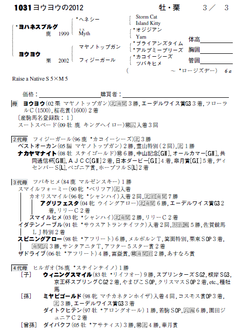 父:ヨハネスブルグ 母:ヨウヨウ(母父:マヤノトップガン)