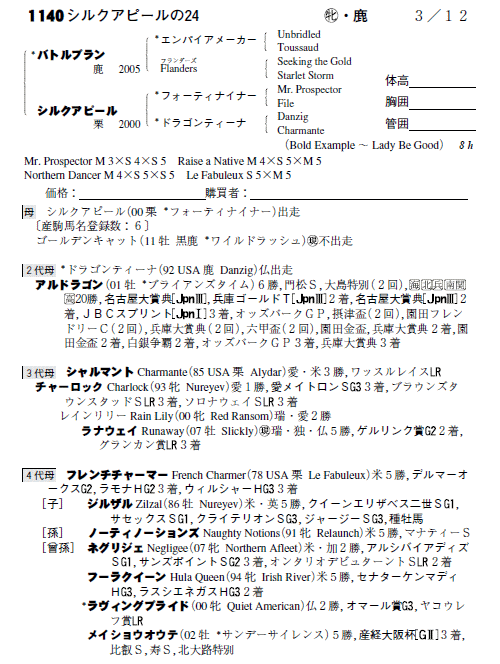 父:バトルプラン 母:シルクアピール(母父:フォーティナイナー)