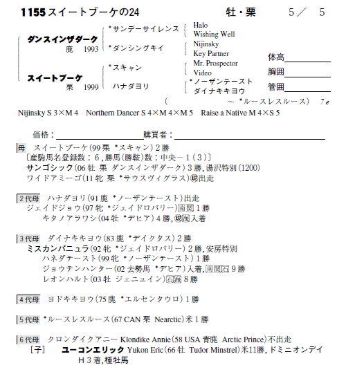 父:ダンスインザダーク 母:スイートブーケ(母父:スキャン)