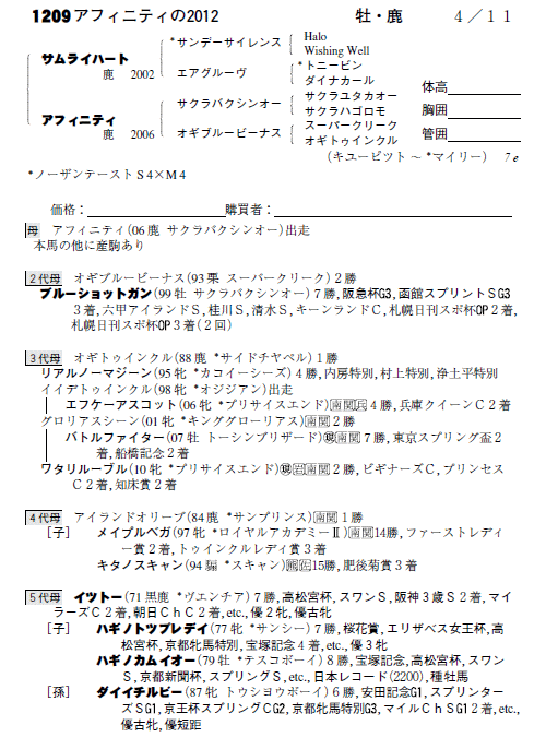 父:サムライハート 母:アフィニティ(母父:サクラバクシンオー)