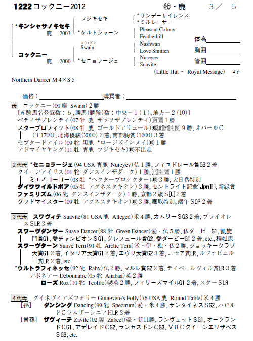 父:キンシャサノキセキ 母:コックニー(母父:Swain)