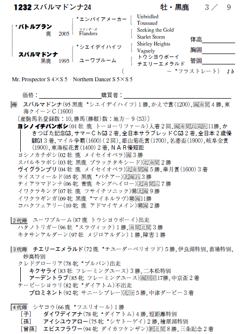 父:バトルプラン 母:スバルマドンナ(母父:シエイデイハイツ)