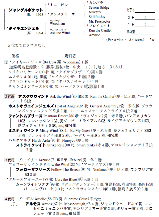 父:ジャングルポケット 母:タイキエンジェル(母父:Woodman)