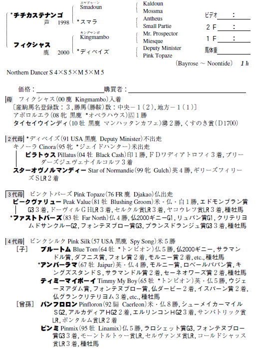 父:チチカステナンゴ 母:フィクシャス(母父:Kingmambo)
